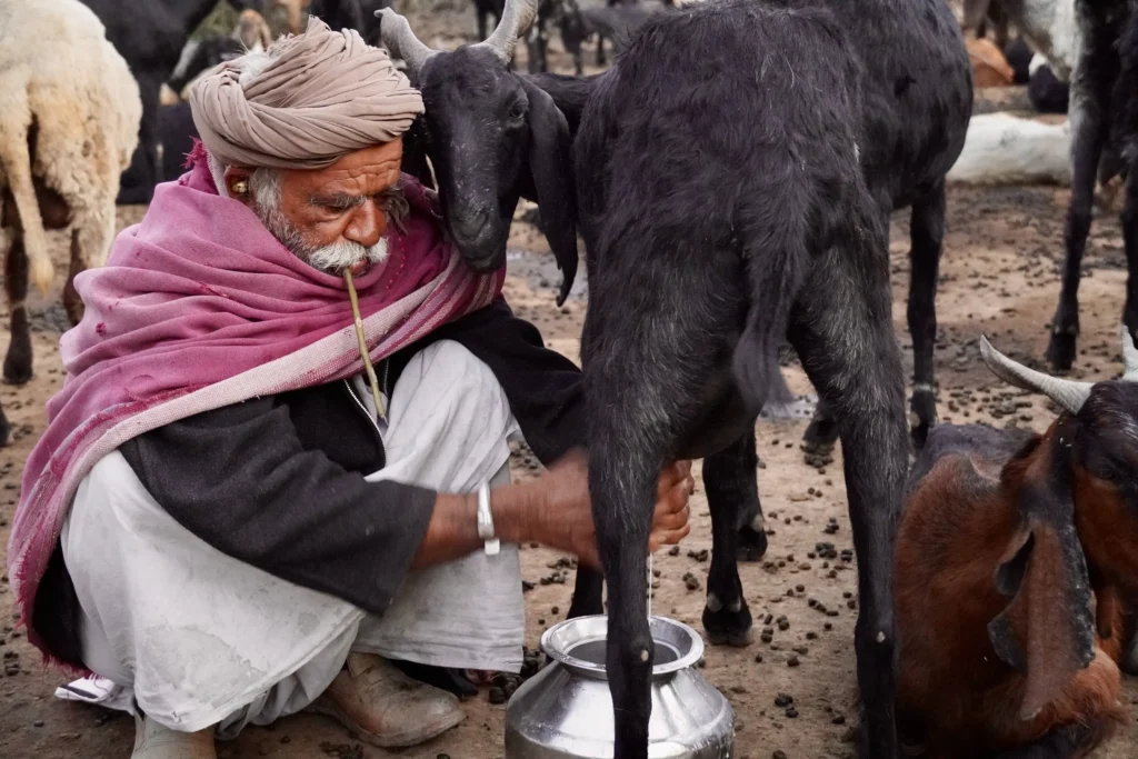 Milking a goat in India (photo by Alexander Pomper)