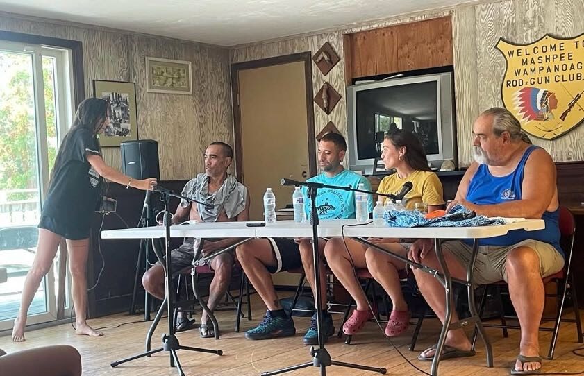 A panel on food sovereignty and the Rights of Nature took place at the Mashpee Wampanoag Rod and Gun Club. Credit: Ciara Oakley-Robbins